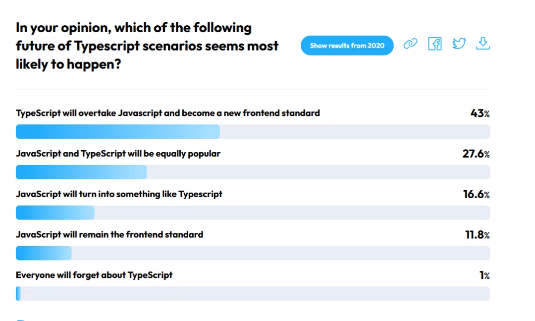 虽然 TypeScript 不会在短期内超越 JavaScript,甚至可能永远不会,但我们可以预见,随着团队将代码库迁移到 TypeScript 或直接使用 TypeScript 来启动新项目,采用 TypeScript 的情况将会变得越来越多。